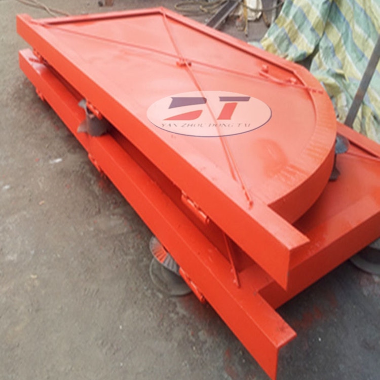 斜風(fēng)井防爆門(mén)是安裝在裝有主要通風(fēng)機(jī)的排風(fēng)井口上的特殊密封井蓋。在正常通風(fēng)時(shí),它被用來(lái)隔離井下氣流與地面大氣,防止風(fēng)流短路,保證通風(fēng)系統(tǒng)正常。當(dāng)井下一旦發(fā)生瓦斯或煤塵爆炸事故時(shí),防爆門(mén)被爆炸的氣流沖擊打開(kāi),從而爆炸氣流直接排放到地面大氣,起到卸壓作用,防止主要通風(fēng)機(jī)因爆炸氣流沖擊而造成損壞;當(dāng)主要通風(fēng)機(jī)停止運(yùn)行時(shí),可以打開(kāi)防爆門(mén),以利用自然風(fēng)壓通風(fēng)。