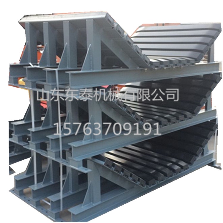 3、緩沖床兩側(cè)的角度采用無級(jí)調(diào)節(jié)設(shè)計(jì),適合不同的輸送帶的運(yùn)量、帶寬及槽角等要求。