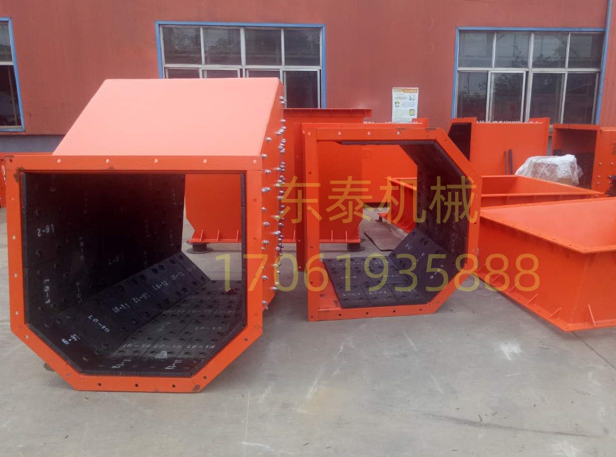 在輸送帶的下面,將原槽型托輥組更換為短槽型托輥組,用來支撐輸送帶的物料重力部位。輸送帶的兩邊非重力部位,用帶有減摩耐磨材料的底板來支撐,即支撐輸送膠帶,又可起密封作用,此支撐底板同側板連接在一起,側板同頂板連接在一起,共同組成殼式密封結構。導料槽的底邊寬度為2/3-1/2帶寬導料槽的截面形狀分為:矩形和弧形兩種。導料槽設計分為后擋板、槽體、前簾三個部分設計。裝于帶式輸送機的受料處約束物料不往外撒落導料槽:可使從漏斗落下的物料在達到帶速之前集中到輸送帶的中部。導料槽的底邊寬度為2/3-1/2帶寬導料槽的截面形狀分為:矩形和喇叭形兩種。導料槽設計分為后擋板、槽體、前簾三個部分設計。