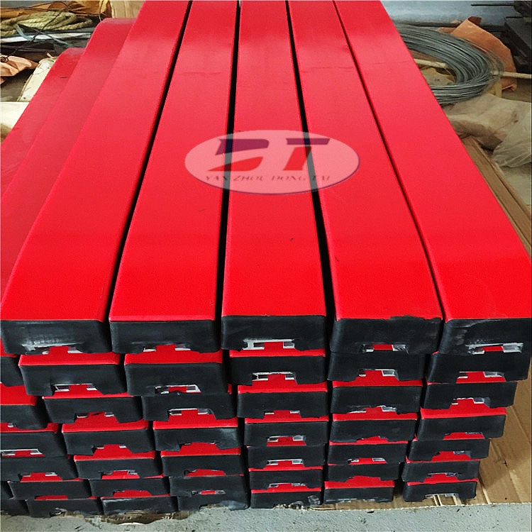 緩沖條表面分子大于500萬,摩擦系數(shù)小耐磨性好,橡膠彈性高非常柔韌度,硬度小于55度吸收沖擊能力非常強(qiáng)。獨(dú)特的山形結(jié)構(gòu)專用的防松倒山型固定螺栓確保緩沖條在運(yùn)行中不松動,徹底克服了國內(nèi)其他類似產(chǎn)品由于采用鋁制平口固定結(jié)構(gòu)導(dǎo)致在運(yùn)行中被砸彎松動的現(xiàn)象。