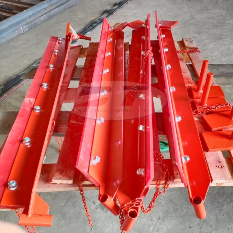 清掃器在輸送機(jī)上有著不可忽視的作用。在運(yùn)行中,如果人為的清除機(jī)尾滾筒附著物,往往容易發(fā)生嚴(yán)重人身傷亡事故。而清掃器有及時(shí)、方便地、快速的清除滾筒附著物的特點(diǎn)。