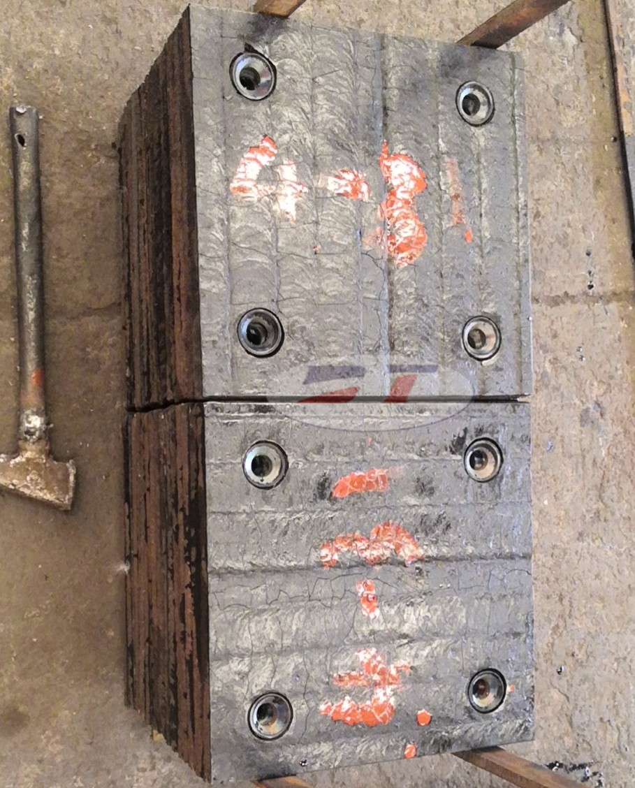 堆焊耐磨襯板,是指在A3鋼板上直接堆焊高硬度,高合金的耐磨焊絲制作而成的耐磨襯板。與傳統(tǒng)的襯板相比,傳統(tǒng)耐磨襯板是由趕場經(jīng)過溶解,軋制制作而成,而這種新型的堆焊耐磨襯板是恒產(chǎn)經(jīng)堆焊后裁通過切割,卷板變形,打孔和焊接等生產(chǎn)工藝加工而成各種耐磨襯板,如輸送機襯板、給煤機底板/旋風分離器倒錐和襯板、耐磨葉片等,耐磨壽命可比普通鋼板提高15倍以上。