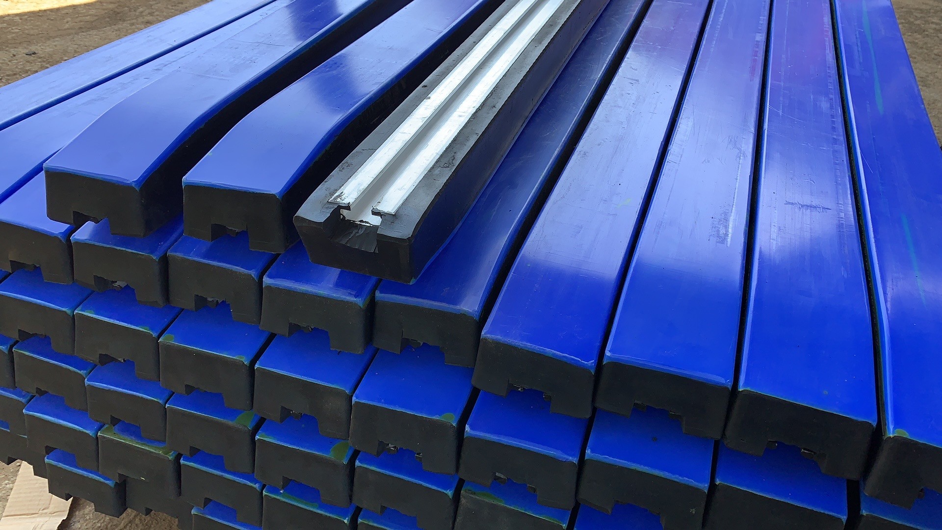 對于特殊復雜工況,也可以提供920萬超高分子聚乙烯板材的緩沖條,磨損率不大于0.1,更加耐磨。緩沖條的橡膠層,天然橡膠含量高,彈性好,非常柔韌,吸收沖擊能力強,自我清潔功能強。緩沖條采用熱硫化工藝,在高溫高壓狀態(tài)下使高彈性橡膠與高分子聚乙烯板材高強度粘接,牢固可靠,永不分離。
