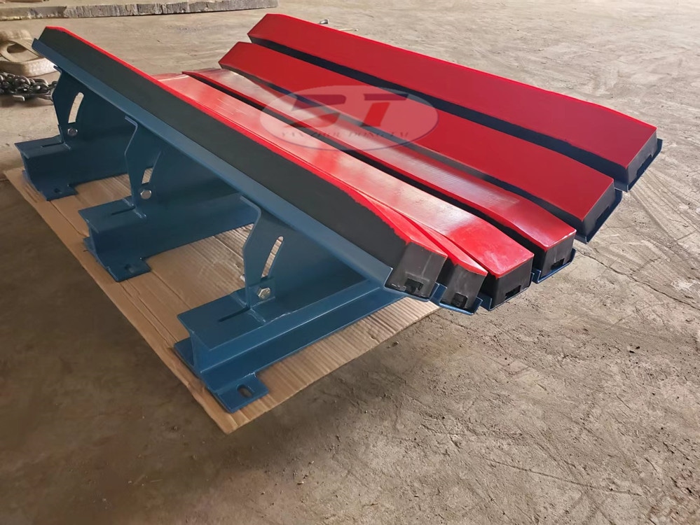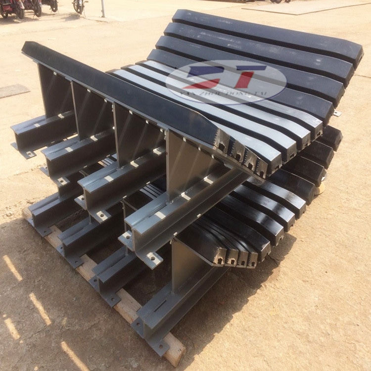 緩沖床主要用于替代緩沖托輥,緩沖床由緩沖條組成,而緩沖條主要應(yīng)用優(yōu)良的高彈性橡膠層充分有效吸收了物料下落時的沖擊力,大大降低了物料下落時對輸送帶的沖擊,真正的了落料點的受力狀況。